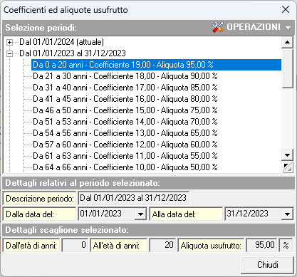 Adeguamento del software alle disposizioni contenute nel Decreto del Ministero dell'Economia e delle Finanze del 24 dicembre 2025 in virtù del quale "il prospetto dei coefficienti per la determinazione della base imponibile dei diritti di usufrutto a vita e delle rendite o pensioni vitalizie, allegato al testo unico delle disposizioni concernenti l'imposta di registro e al testo unico delle disposizioni concernenti l'imposta sulle successioni e donazioni è determinato assumendo 2,5 per cento come misura di riferimento" con conseguente mantenimento: