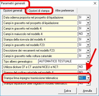Per non stampare alcuna immagine/firma sarà sufficiente reimpostare a NO l'opzione Stampa firma impegno telematico.