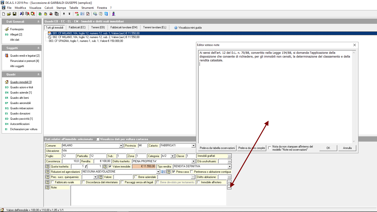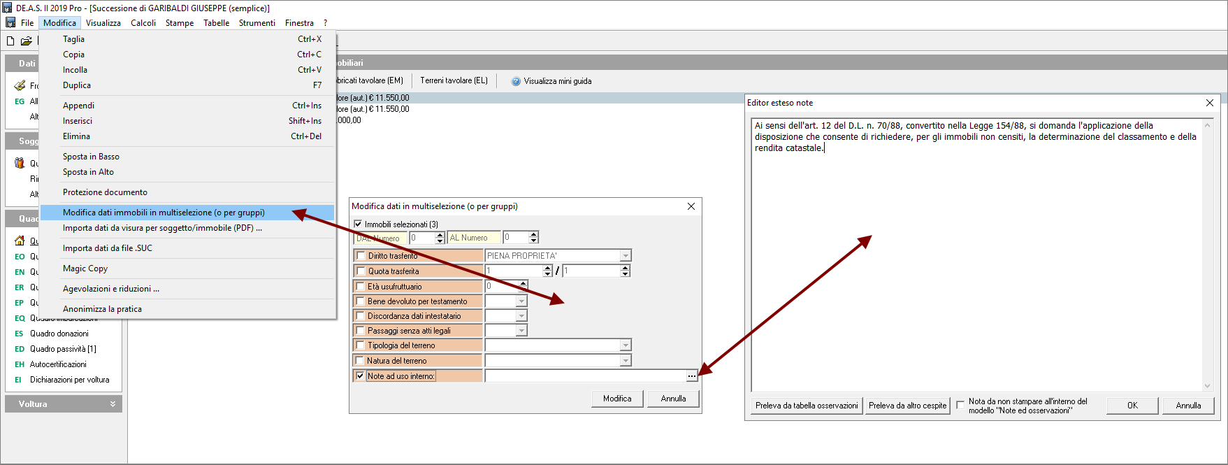 È possibile anche modificare le note per un gruppo di immobili in multiselezione tramite la relativa funzione all'interno del menu Modifica.