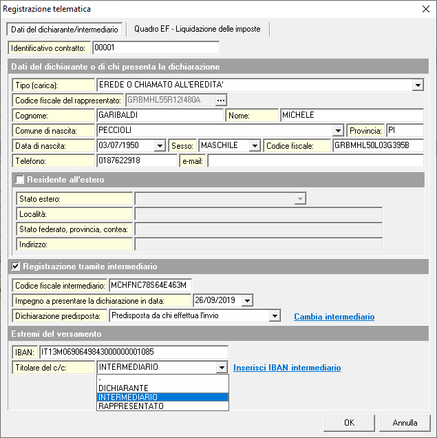 In questi casi, normalmente, si richiede il versamento delle somme sul conto corrente intestato all'intermediario e - una volta accreditato l'importo - si utilizza quest'ultimo, specificando il titolare al momento della trasmissione telematica.
