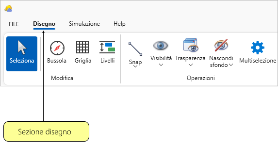 Il pannello Disegno appartenente alla barra multifunzione contiene diverse sezioni così elencate: