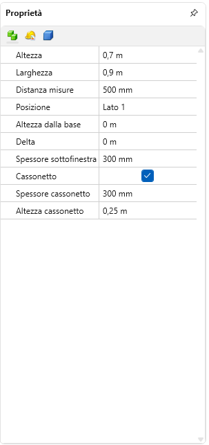 Nel Pannello Proprietà possiamo definire i parametri selezionando la finestra desiderata.