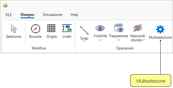 La funzione denominata Multiselezione, accessibile dalla scheda Disegno, permette di selezionare tutte le entità in base a determinati criteri.