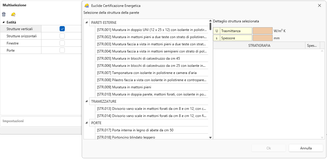 Associare un determinato elemento di archivio di Euclide Certificazione Energetica. Questa operazione è accessibile solamente quando è selezionato solamente un filtro. Ad esempio, selezionando solamente “Strutture verticali”, sarà possibile collegare tutte le strutture selezionate ad una determinata struttura presente all'interno di Euclide Certificazione Energetica.