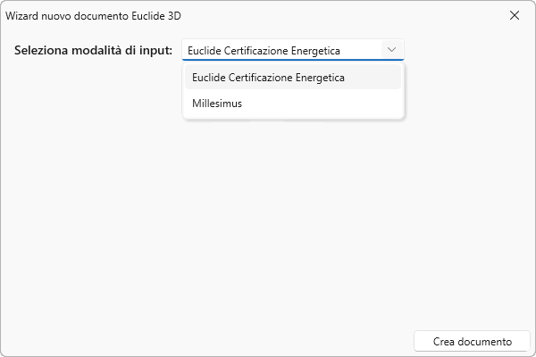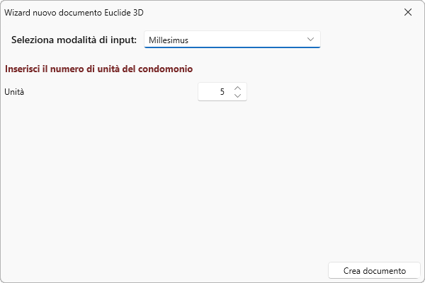 Dopo aver selezionato il relativo comando, verrà visualizzato un wizard denominato Nuovo documento Euclide 3D.