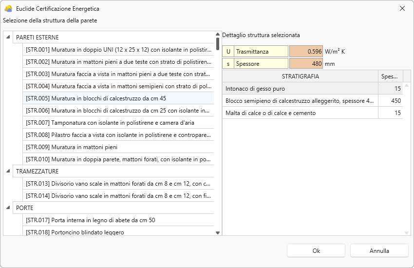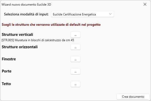 Cliccando sul pulsante con i tre puntini, si aprirà la banca dati di Euclide Certificazione Energetica che permetterà di assegnare le strutture di default.
