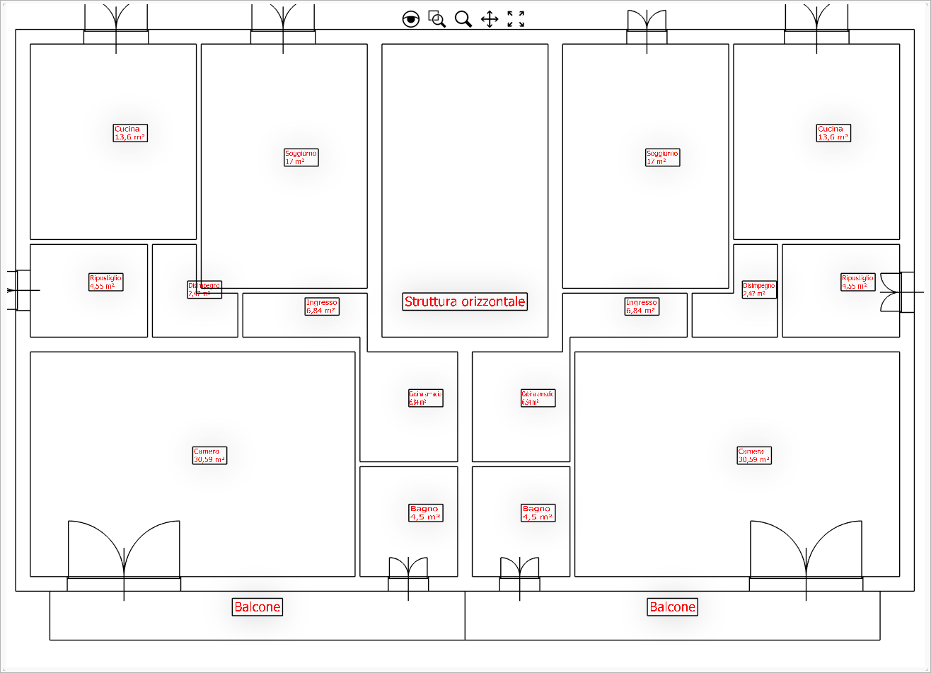 Premendo sul pulsante Vano, sarà possibile identificare i vani presenti all'interno del progetto. Questa funzionalità avviene solamente sulla vista 2D.