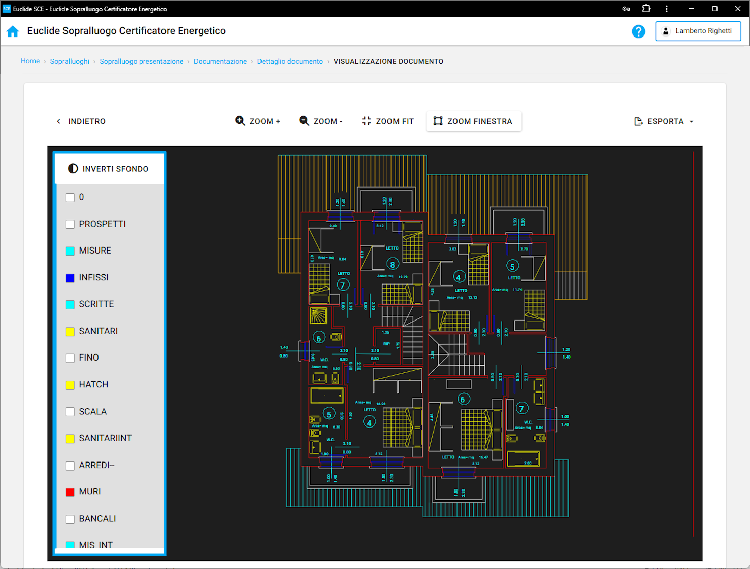 All'interno di Euclide Sopralluogo Certificatore Energetico è presente un visualizzatore integrato per la visualizzazione della planimetrie in formato .DXF