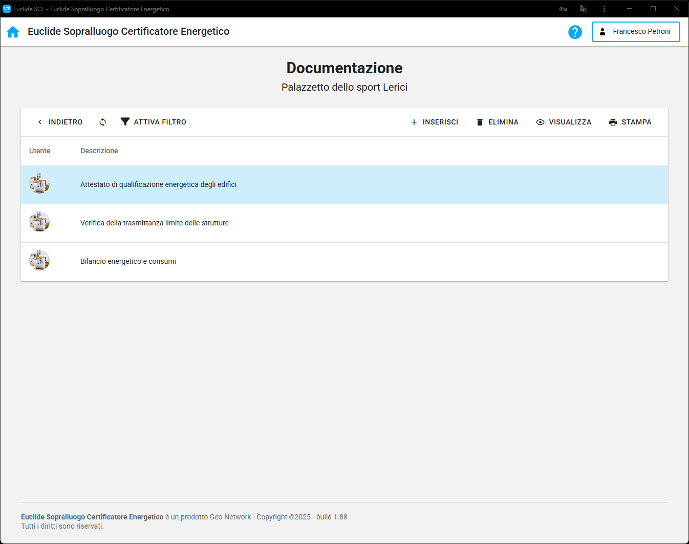 È possibile caricare la documentazione anche dalla sezione Registro documenti di Euclide Certificazione Energetica (ad esempio per caricare l'APE, una volta redatto).