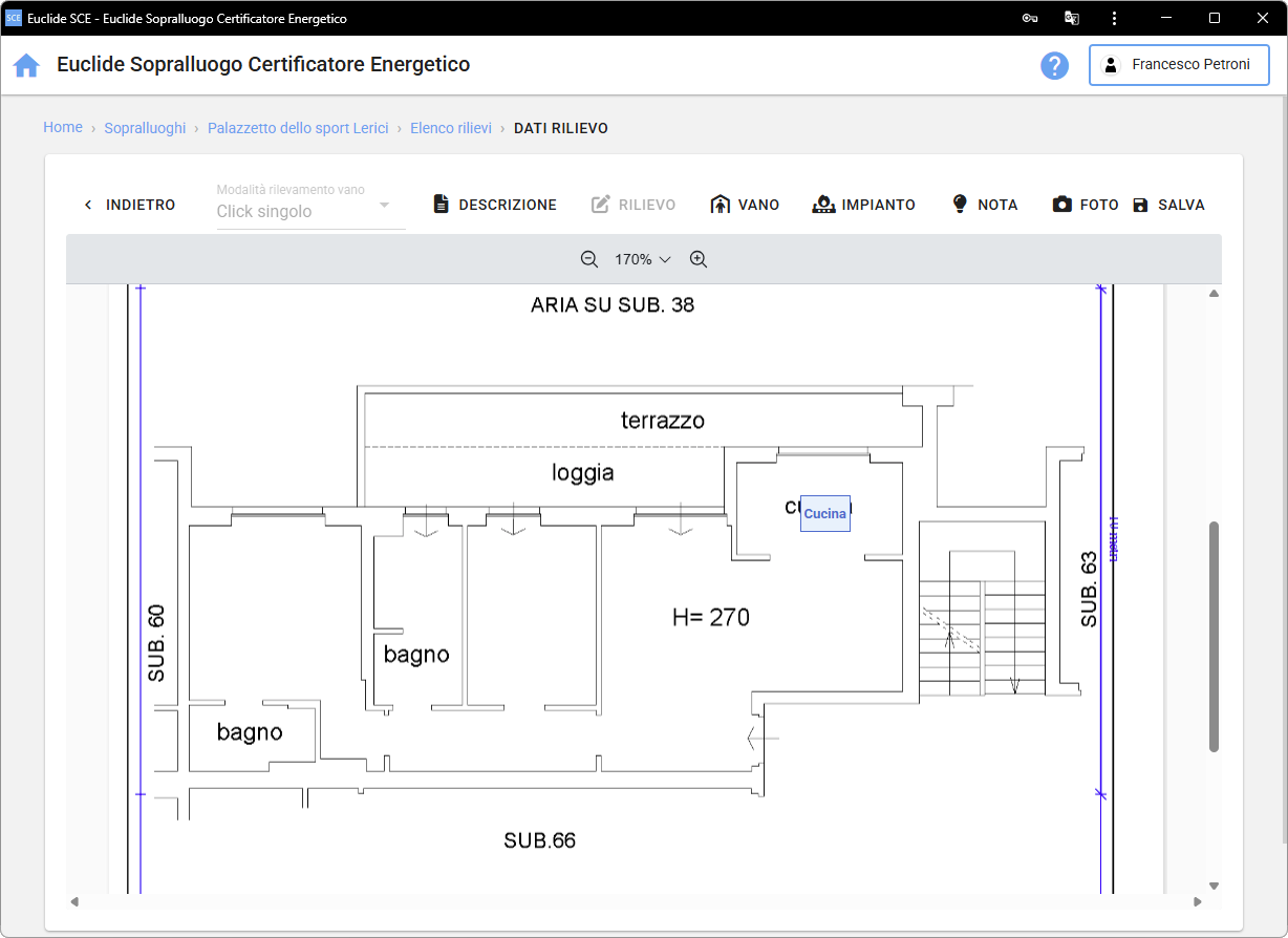 In questa sezione è possibile definire la modalità di rilevamento dei vani e inserire la descrizione del rilievo.