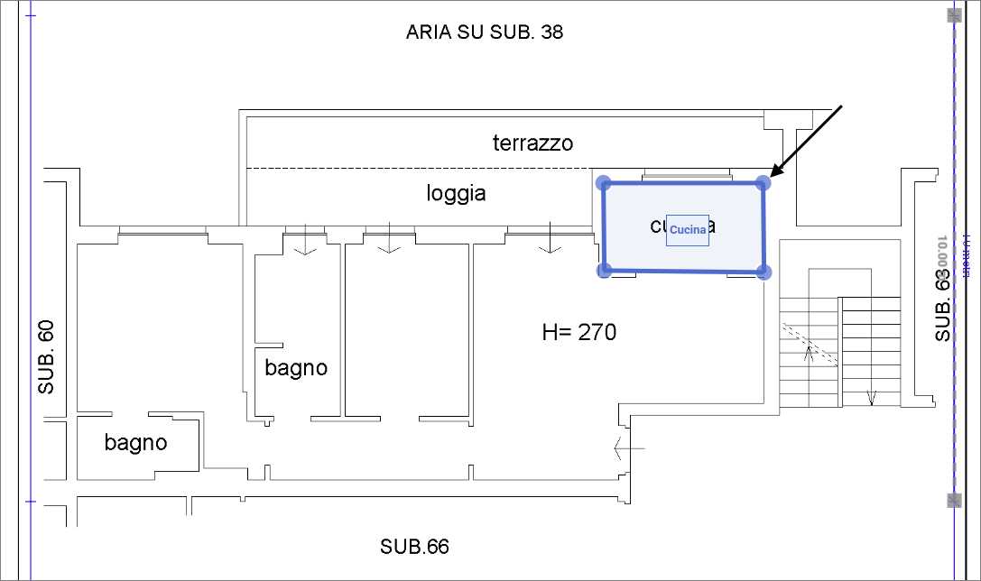 - Il punto verde indica il punto iniziale, che coincide anche con quello di chiusura. Per chiudere il vano, è quindi necessario cliccare nuovamente su questo punto. Il punto giallo, invece, rappresenta l'ultimo punto disegnato.