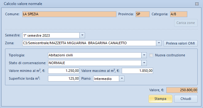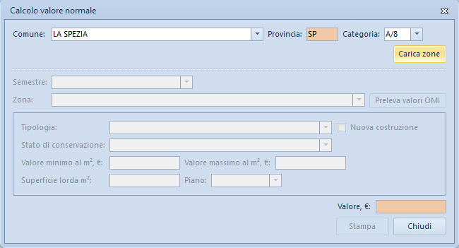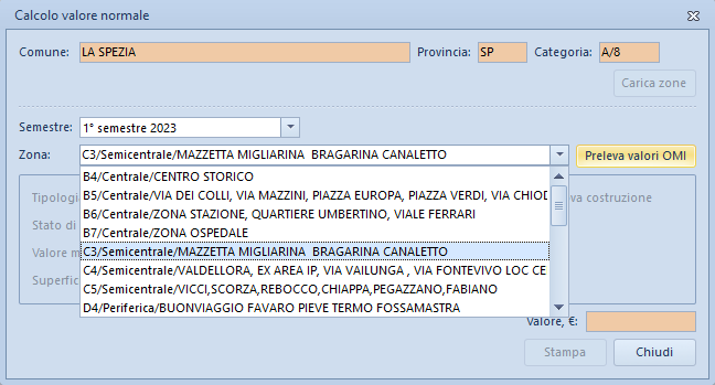 Nel caso in cui non fossero presenti le quotazioni di un determinato semestre (es. 1° semestre 2019), è possibile utilizzare il pulsante Preleva valore OMI