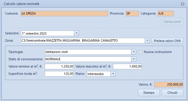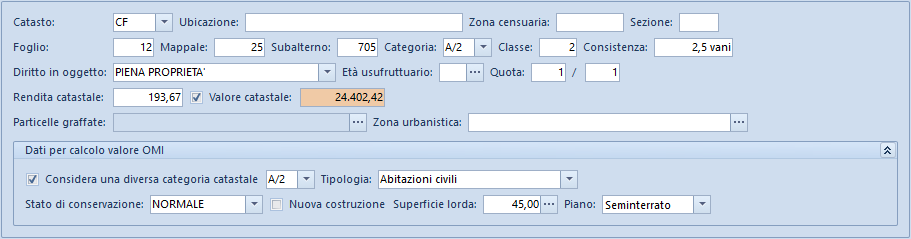 Il calcolo del valore normale dei fabbricati è disponibile anche all'interno della singola pratica, nella sezione degli Immobili. In tal modo sarà possibile calcolare il valore per diverse unità immobiliari (ad esempio l'appartamento e le relative pertinenze).