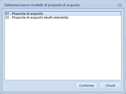 È possibile utilizzare un diverso modello di proposta di acquisto rispetto a quello standard; la selezione avviene scegliendo tra gli eventuali modelli precedentemente creati dall'utente attraverso il menu Strumenti | Modifica Proposta di acquisto | Crea nuova proposta