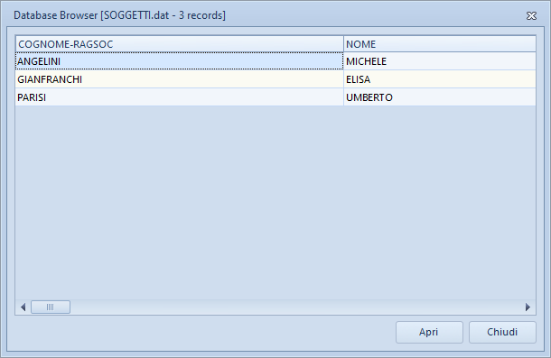 Con questa funzione è possibile aprire i singoli file di database utilizzati dal programma e inserire, modificare ed eliminare tutti i dati presenti.