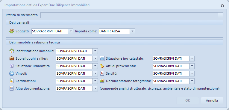 Expert Trasferimenti Immobiliari consente di importare i dati inseriti in una pratica di Expert Due Diligence Immobiliare