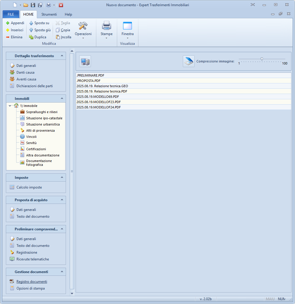 Expert Trasferimenti Immobiliari memorizza nella sezione Registro documenti