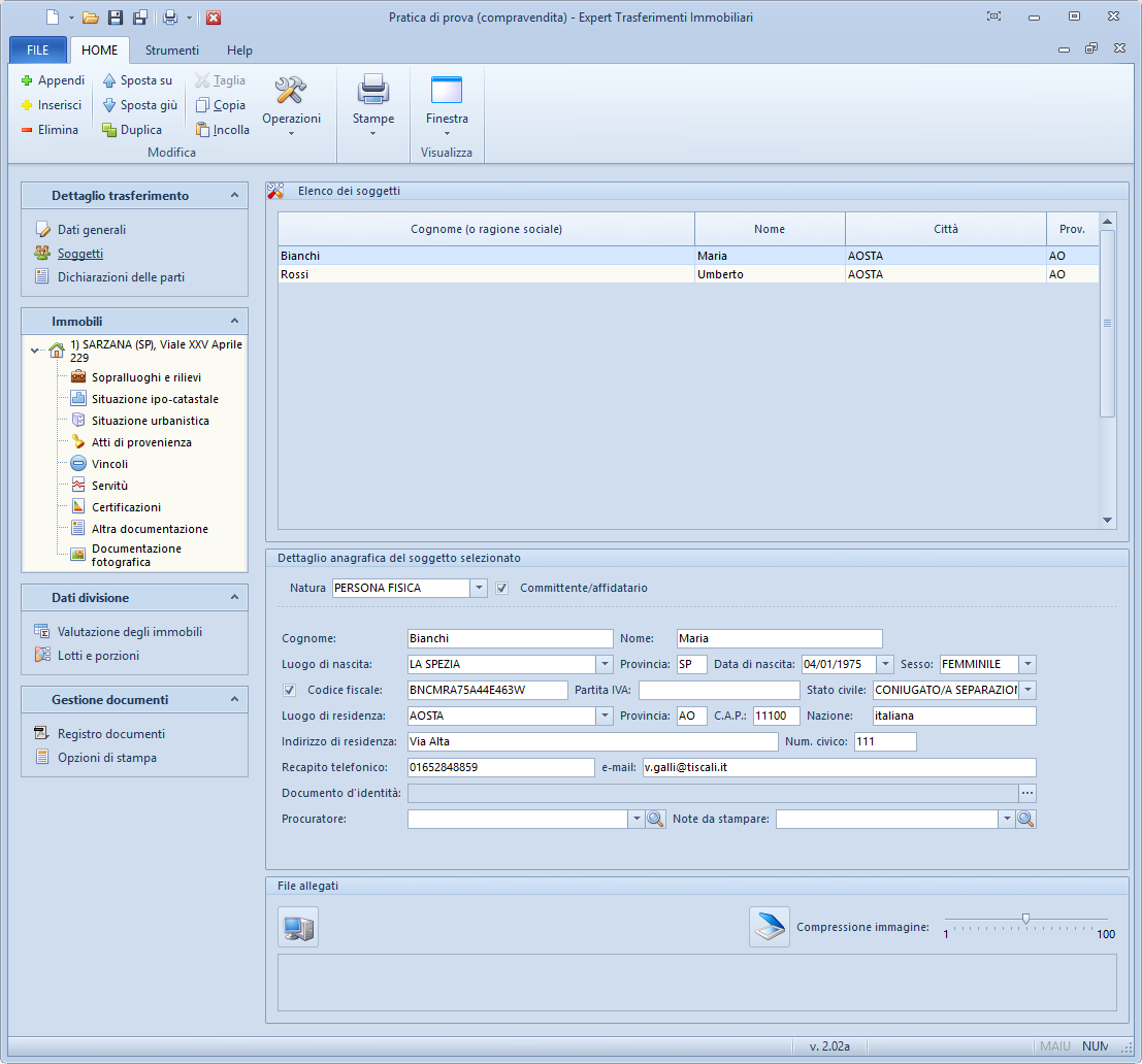 In particolare, è necessario inserire i dati anagrafici completi. Il software calcolerà automaticamente il codice fiscale a partire dal cognome, dal nome, dalla data e dal luogo di nascita; è comunque indispensabile verificarne sempre l'esattezza rispetto a quello in possesso del soggetto.