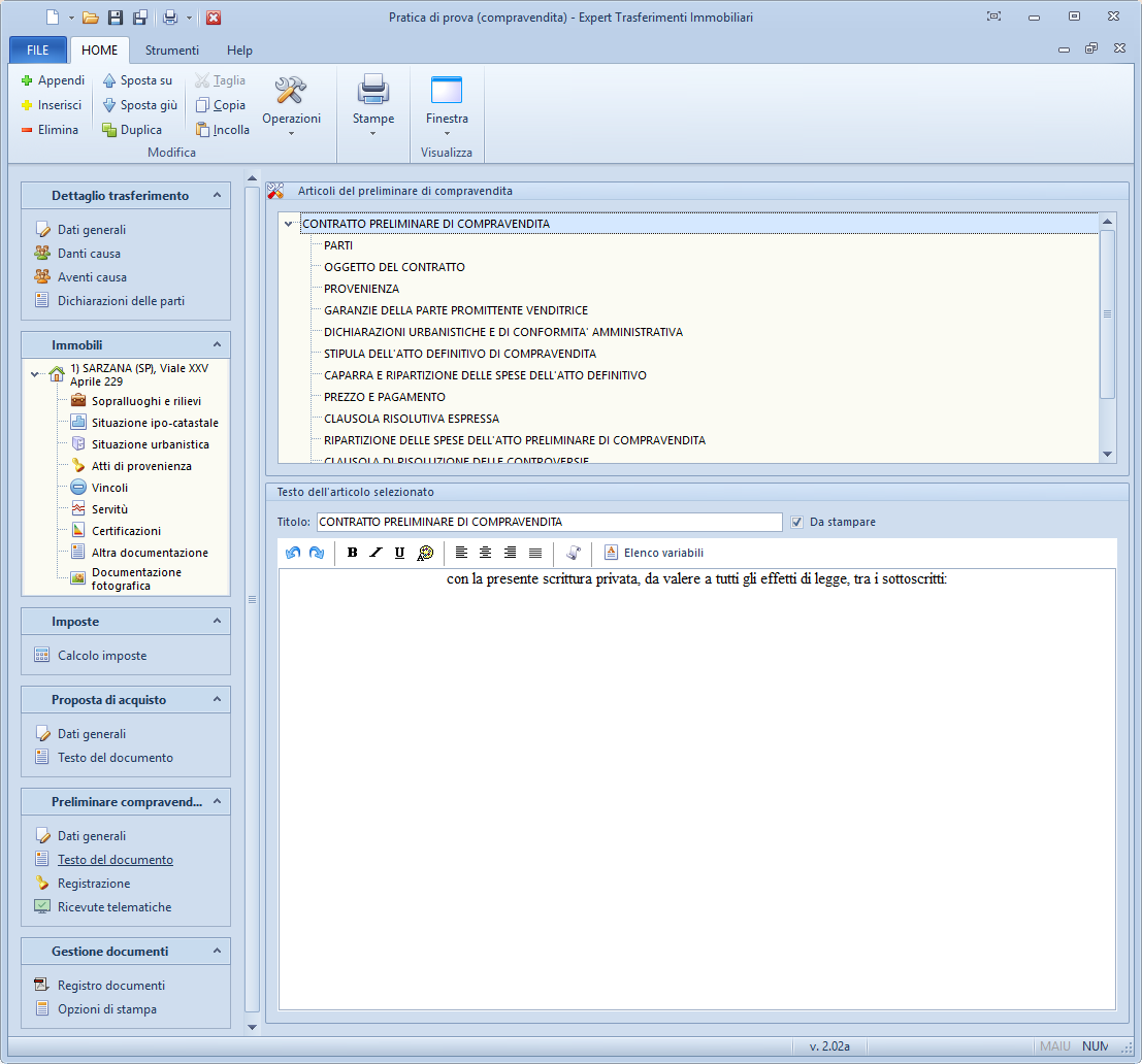 È possibile caricare un diverso modello di preliminare di compravendita tramite l'apposita funzione Carica un diverso modello di preliminare di compravendita (disponibile nel menu Operazioni