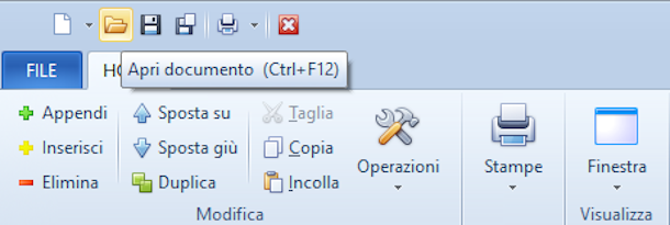 Per aprire una pratica precedentemente creata si può utilizzare: