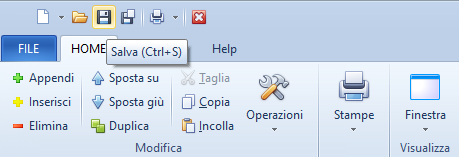È possibile salvare una pratica precedentemente creata o aperta tramite: