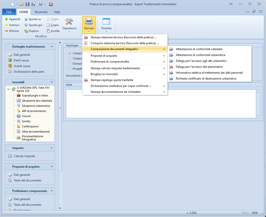 Expert Trasferimenti Immobiliari vi permette di comporre i seguenti documenti integrativi: