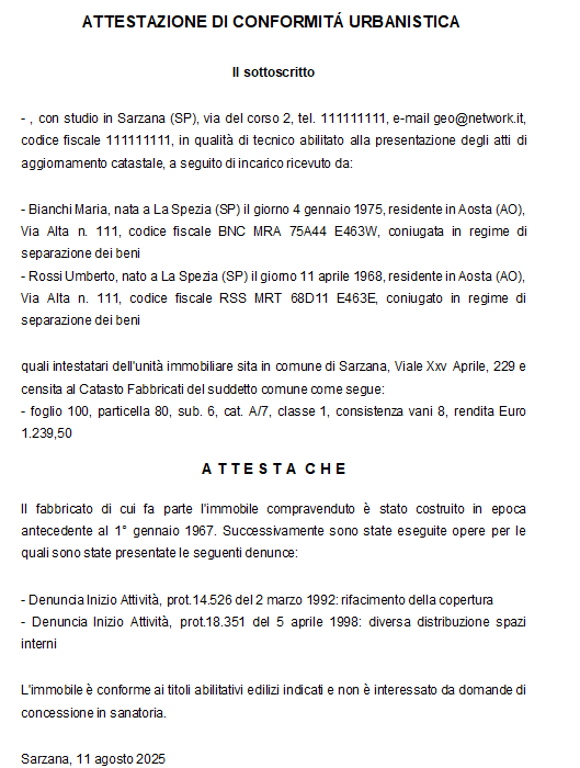 Stampa attestazione di conformità urbanistica