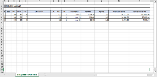 Dal menu Stampe | Stampe di utilità | Stampa brogliaccio immobili (formato XLS)