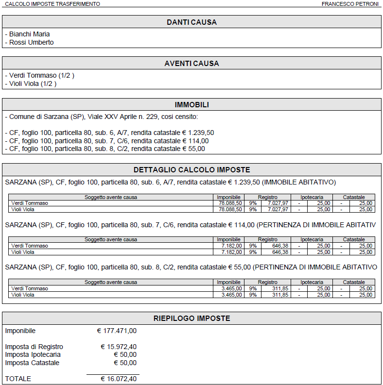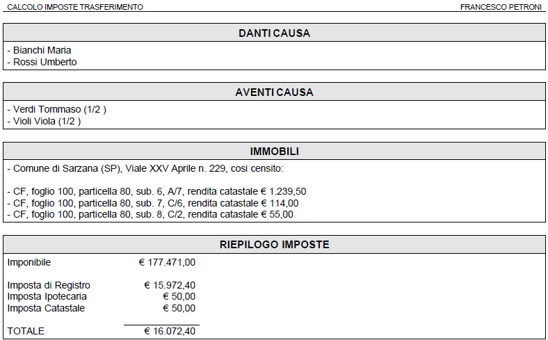 Stampa calcolo imposte trasferimento