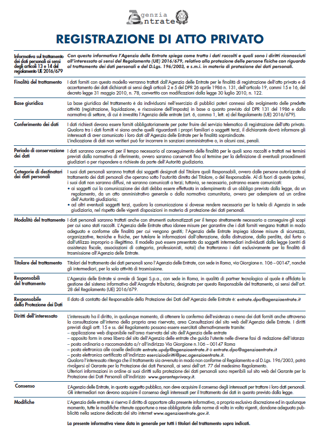 Attraverso questa funzione, l'utente ha la possibilità di generare il modello necessario per la registrazione, garantendo così la corretta predisposizione della documentazione da presentare all'Agenzia delle Entrate.