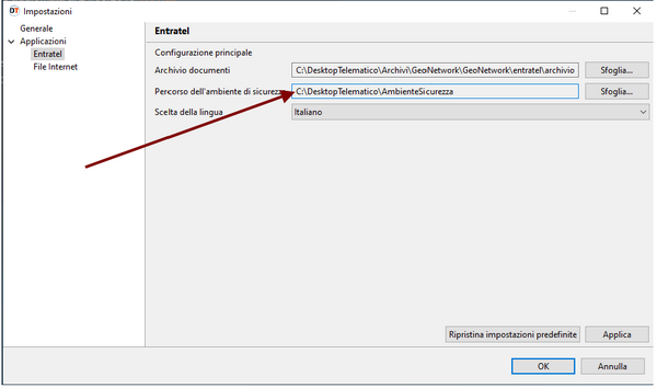 Per risalire alla cartella dove è memorizzato l'ambiente di sicurezza di Desktop Telematico, si può fare riferimento alla funzione: