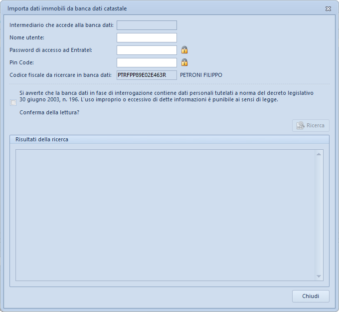 Expert IMU - tramite il comando Operazioni | Importa dati da Entratel preleva dalla banca dati catastale i dati degli immobili che risultano intestati al soggetto ricercato (tramite codice fiscale della persona fisica).