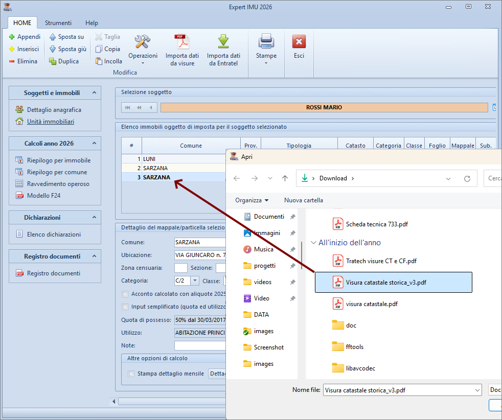 È inoltre possibile importare anche più di una visura PDF tramite la funzionalità del drag & drop da esplora risorse di Windows.