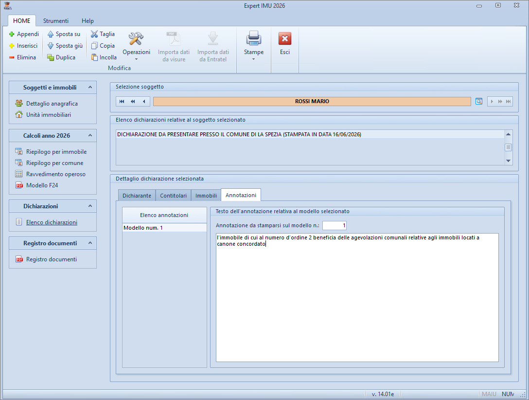 È necessario indicare, nel relativo campo, il numero del modello al quale si riferisce l'annotazione corrente.