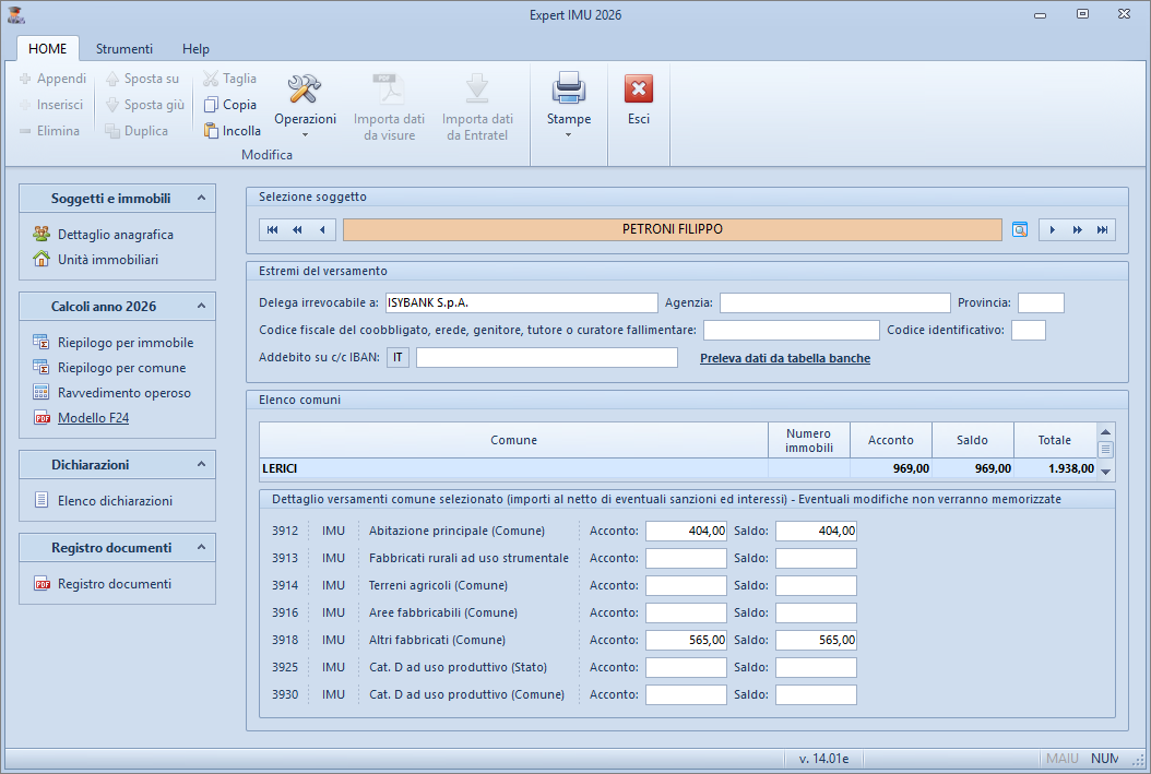 È possibile modificare gli importi proposti dal programma, al fine di effettuare una stampa. Gli importi stessi verranno comunque immediatamente ricalcolati sulla base dei dati introdotti nel quadro immobili.