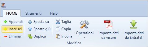 Il comando Inserisci permette di inserire un nuovo elemento (soggetti, immobili ecc.) nell'archivio.