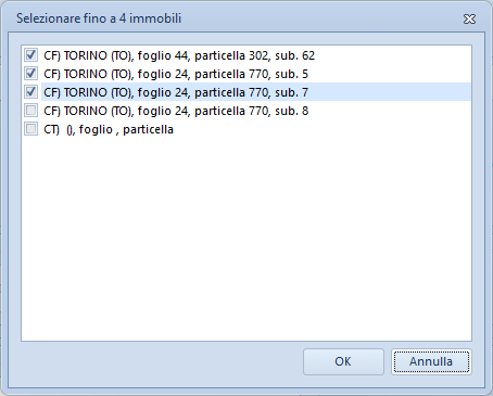 è possibile - dopo aver selezionato uno o più immobili da includere nell'autocertificazione - stampare il modello ministeriale da utilizzarsi nel caso in cui il contribuente debba autocertificare la proprietà o la titolarità di altro diritto reale di godimento su immobili.