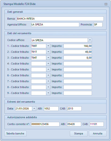 Inoltre, mediante il pulsante Tabella banche, è possibile richiamare e importare automaticamente i dati delle banche presenti nella tabella di sistema.