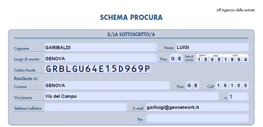Stampa schema procura (delega per consegna documentazione/istanza uffici AdE)