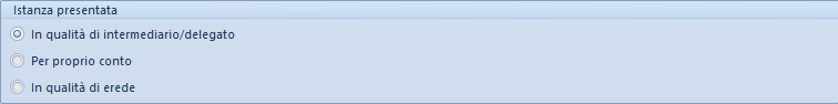 Nella prima sezione sarà necessario indicare se l'istanza è presentata: