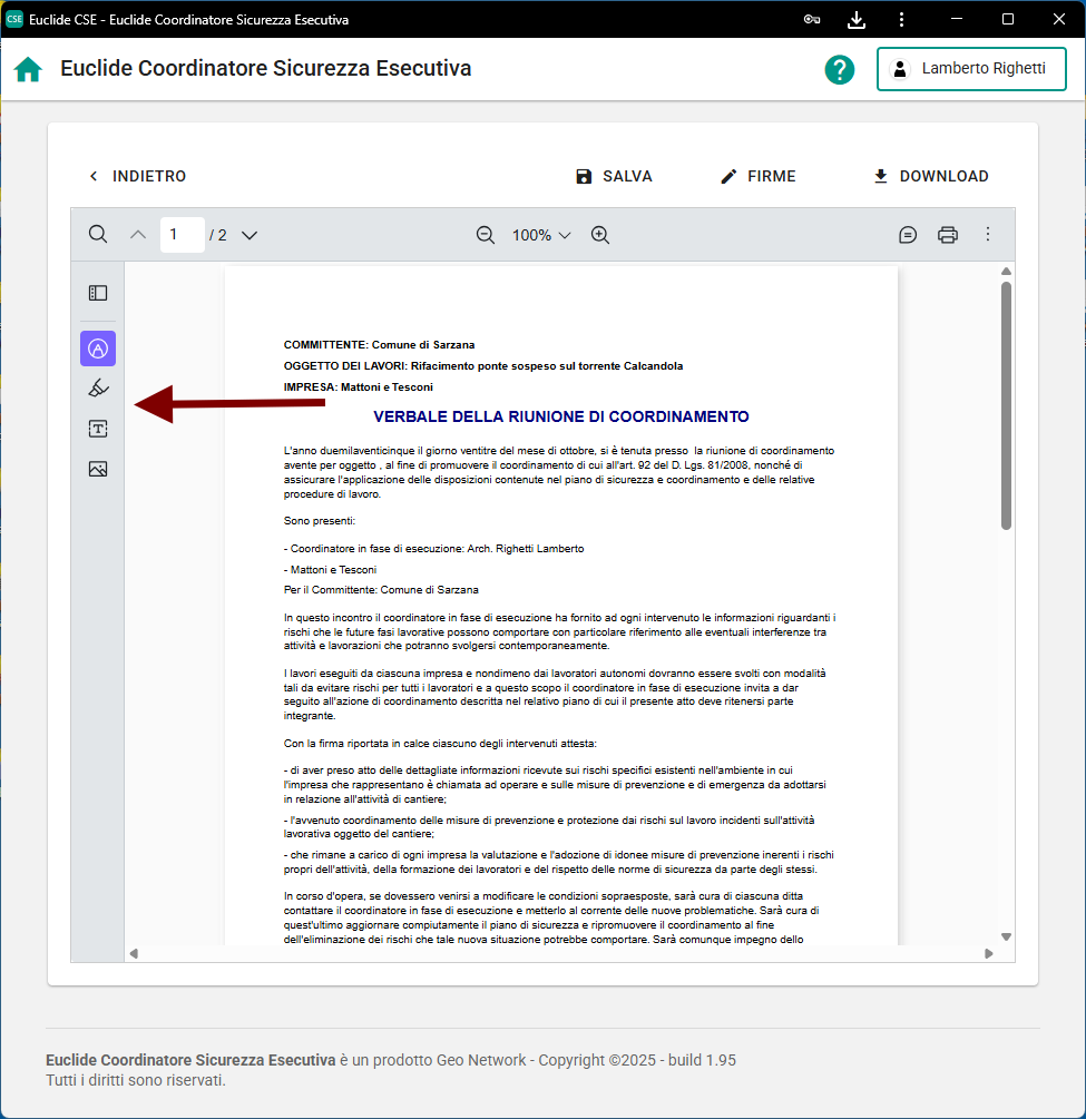 All'interno di Euclide Coordinatore Sicurezza Esecutiva è presente un visualizzatore integrato per la visualizzazione degli elaborati in formato .pdf