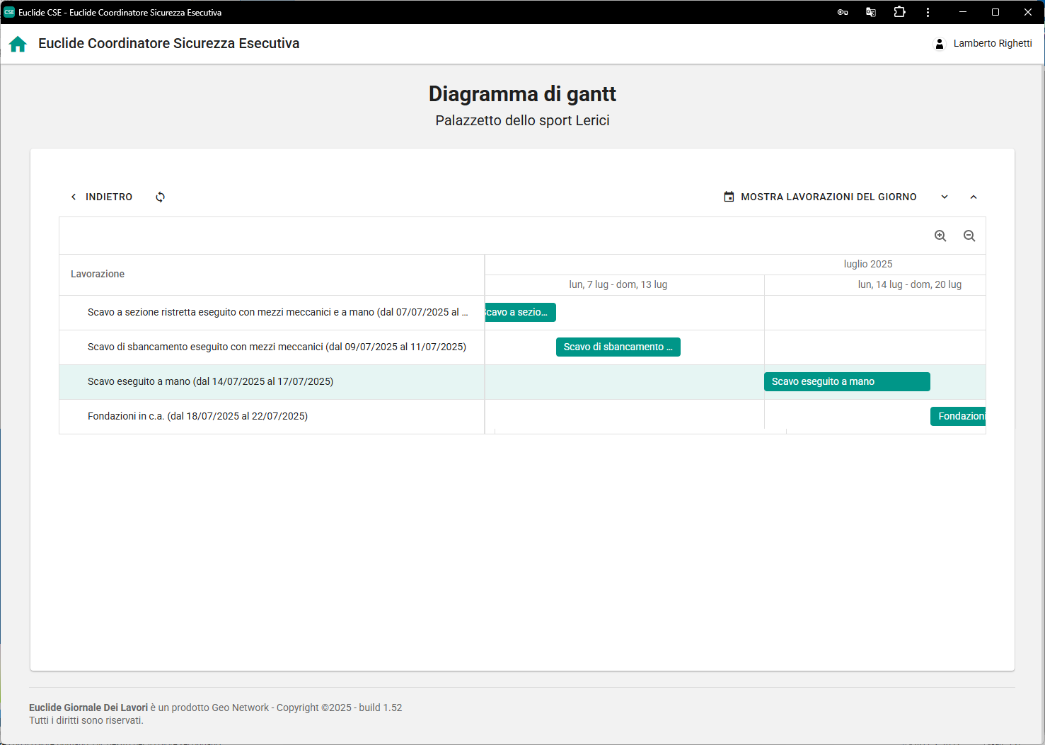| Permette di tornare alla precedente pagina di Euclide Coordinatore Sicurezza Esecutiva, nella fattispecie al diagramma di Gantt | |