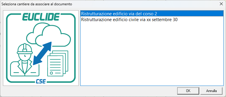 Dopo aver effettuato l'accesso, sarà necessario scegliere il cantiere di riferimento da associare al documento.