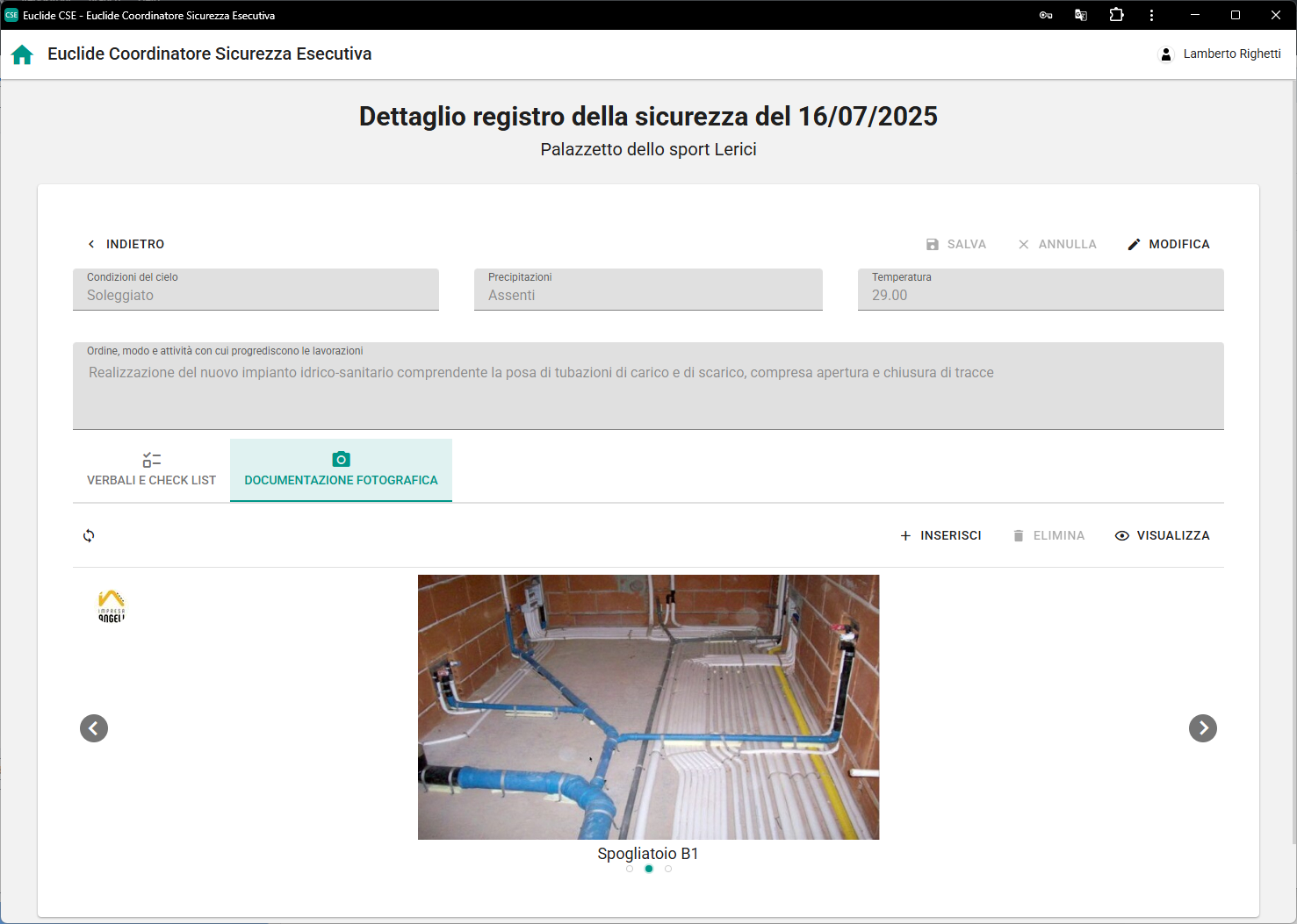 | Permette di tornare alla precedente pagina di Euclide Coordinatore Sicurezza Esecutiva, nella fattispecie al dettaglio giornaliero della registrazione | |