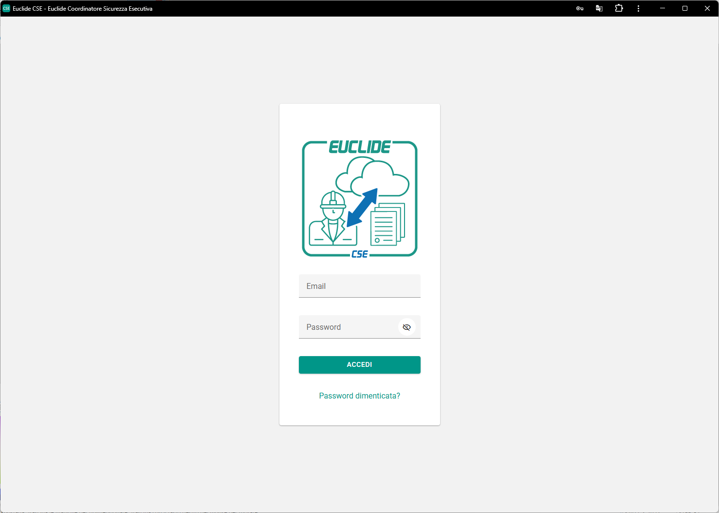 In questa sezione è necessario inserire le credenziali di accesso fornite da Geo Network al momento dell'attivazione del servizio, per poter accedere correttamente alla piattaforma Euclide Coordinatore Sicurezza Esecutiva.
