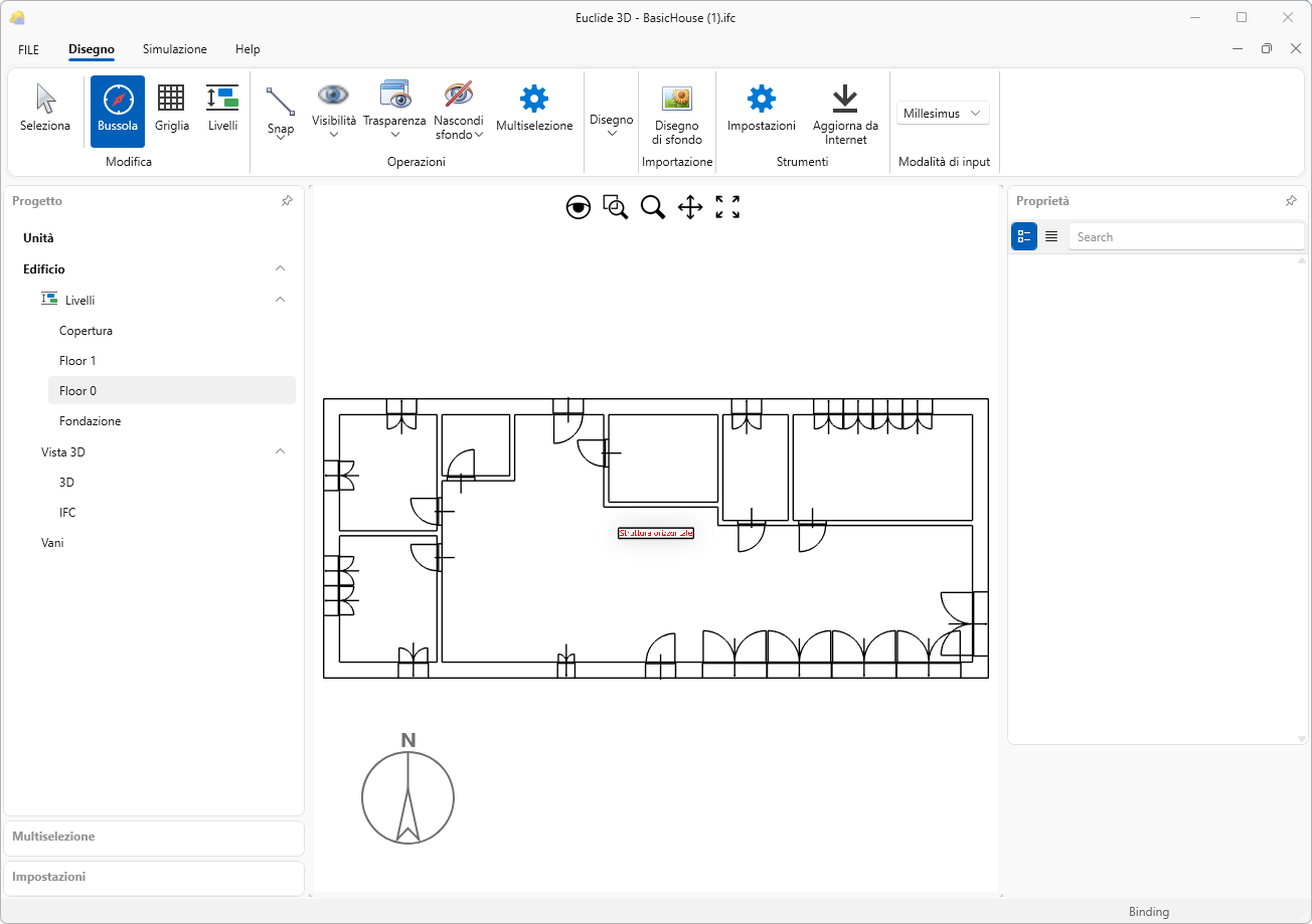 La funzione denominata Bussola, accessibile dalla scheda Disegno, permette di visualizzare o nascondere lo strumento per l'orientamento.