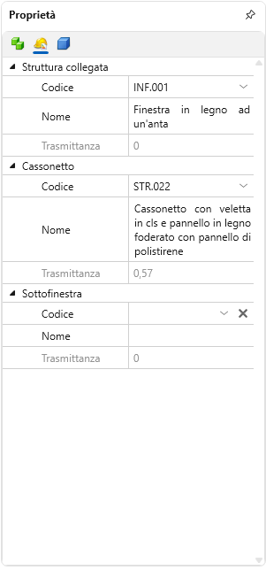 Oltre a collegare l'elemento Finestra, è possibile collegare l'elemento Cassonetto e l'elemento Sottofinestra.