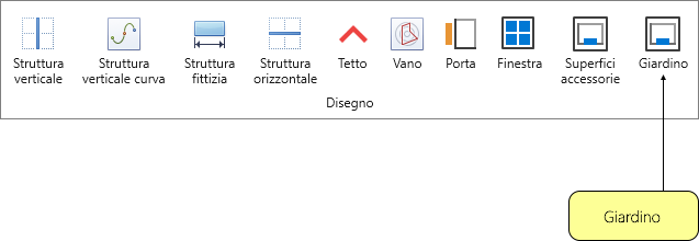 La funzione denominata Giardino, accessibile dalla scheda Disegno permette di identificare chiaramente l'entità come giardino/superficie verde.
