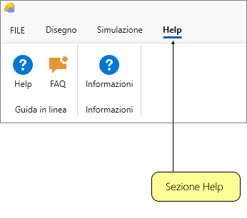 La scheda Help permette di ottenere assistenza e chiarimenti sulle funzionalità disponibili.