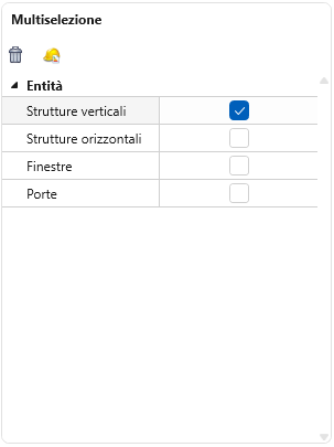 Sulle entità selezionate è possibile effettuare l'operazione associata alla toolbar presente all'interno del pannello.